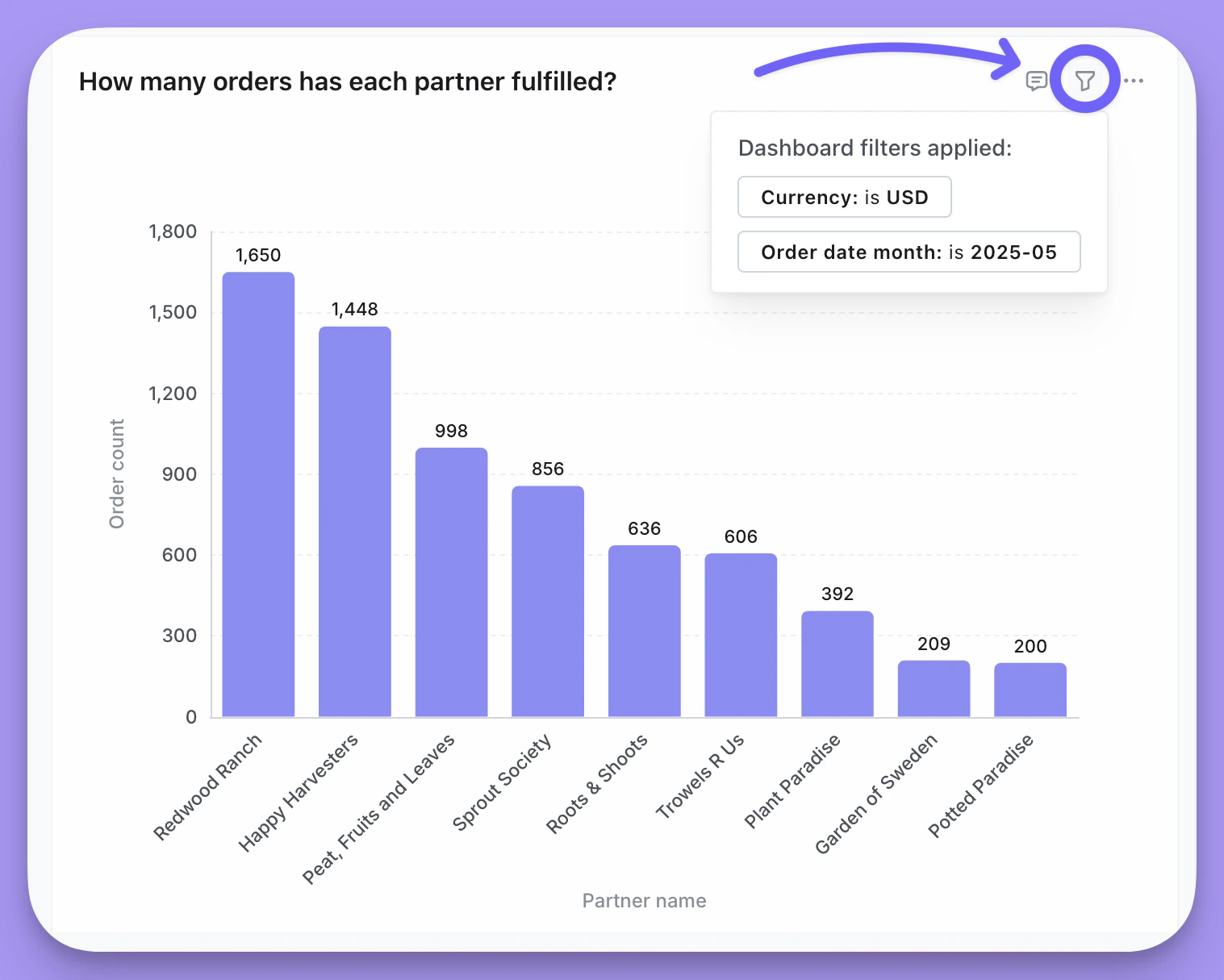 Once you’ve clicked on your filter, all of the tiles in your dashboard with the filter field will be filtered to the value you selected.