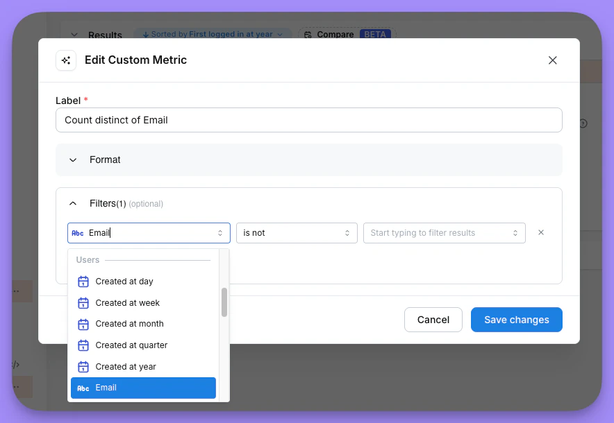 To learn more about the custom metric types, read the metrics reference documentation here. Only aggregate metric types are available as custom metrics.Adding filters to your custom metric