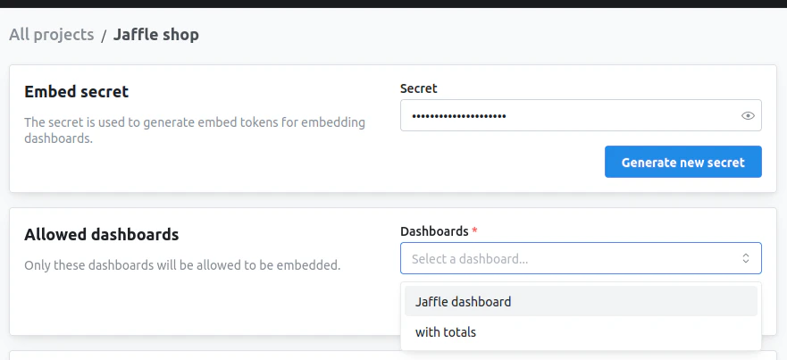 This quick start will walk you through embedding your first dashboard using an iframe.Step 1: Create an embed secret