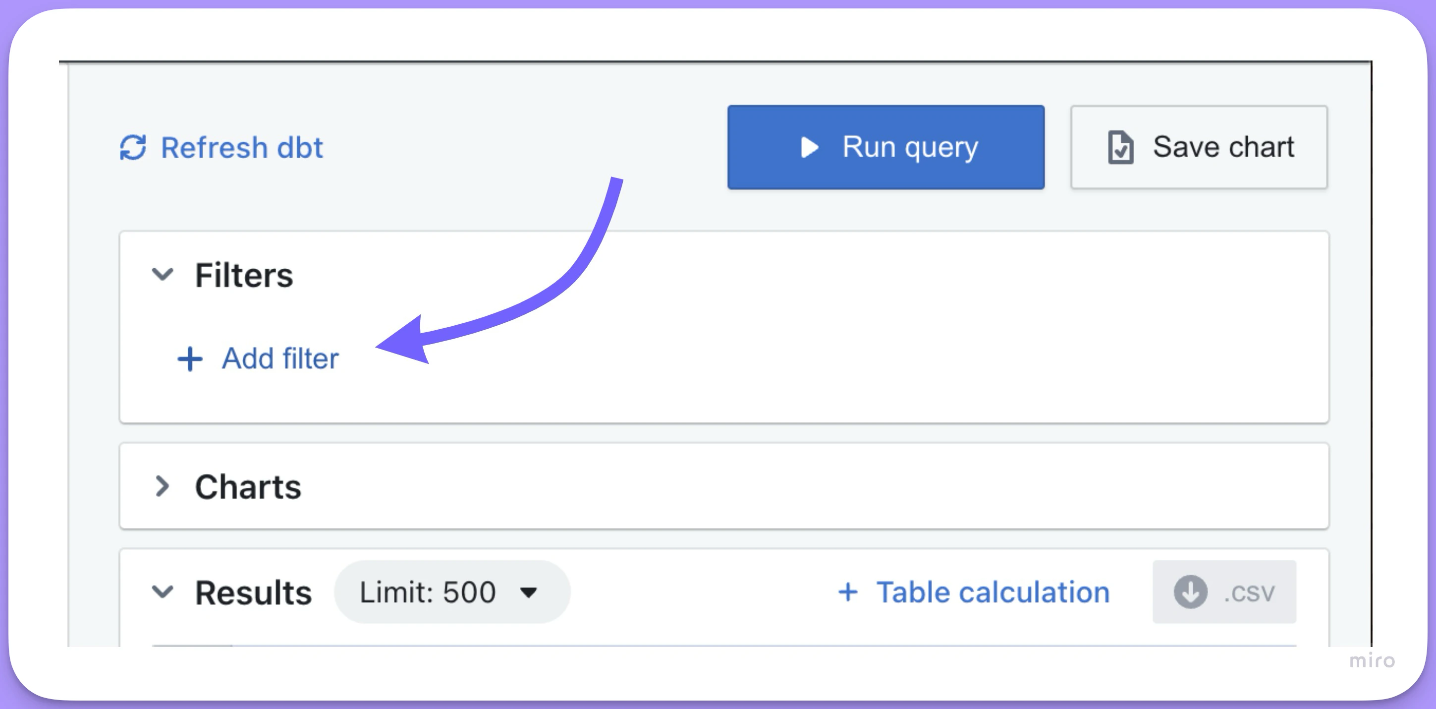 editor or an admin for your project.Filtering charts created in the SQL Runner
